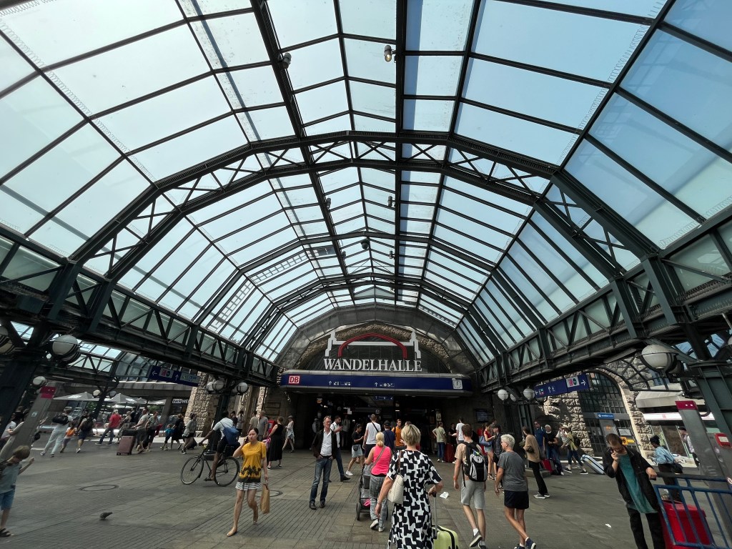 I then made my way to the new and modern symphony and opera house, the Elbphilharmonie. It is an incredible building, ultra modern, married well with its surroundings. I could not visit the symphony hall itself as it was closed to the public. However, I was able to go up to the terrace which gives a beautiful view of the harbour. It costs 2 Euros to visit but when I got to the entrance, the nice lady told me in English, without me having to ask the price of a ticket, that it was free for me. I guess with my white hair I resemble a senior American tourist. I took the Metro back to my hotel, cheap, clean and not at all crowded even at rush hour