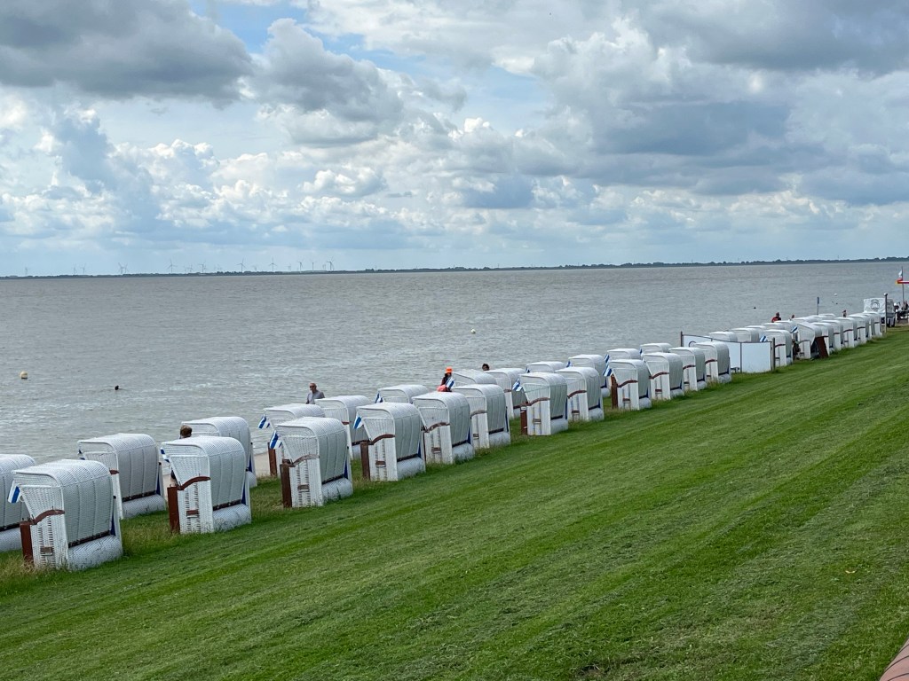 I am staying at the Nordsee Hotel on the beach just outside of Wilhelmshaven. It is a nice enough 2-3*, very clean like everything in Germany but without too much character. I wasn’t looking for character; I was more interested in price and convenience when I chose it. I have a beautiful view of the beach and the gardens and I can get to ‘downtown’ easily in 5 minutes on my motor bike.