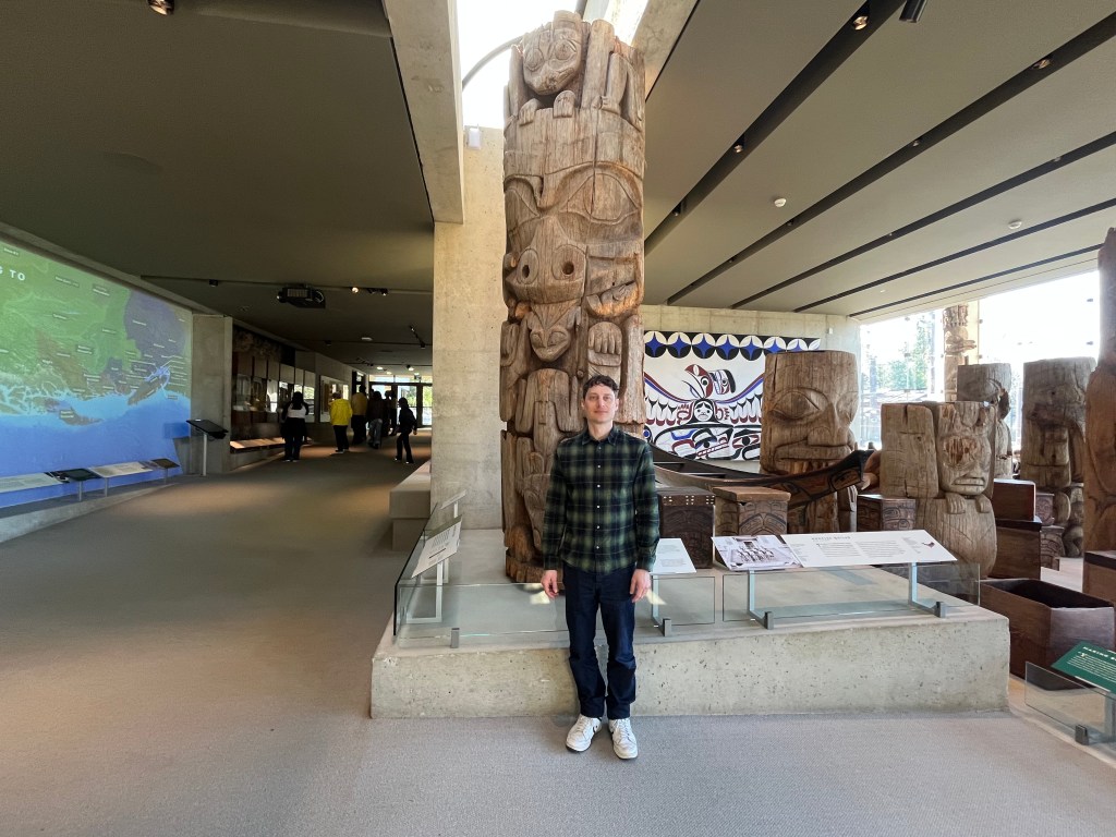 We met Antoine at Starbucks for a coffee and then drove out to the University of British Columbia. The university is situated on a huge piece of protected land on the coast, west of the city. The campus is absolutely beautiful. The Museum of Anthropology is situated on the campus. We spent a few hours there looking at native art from B.C. and other places around the world. There is a large collection of totem poles both in the museum and on the campus. We also visited the concert hall.