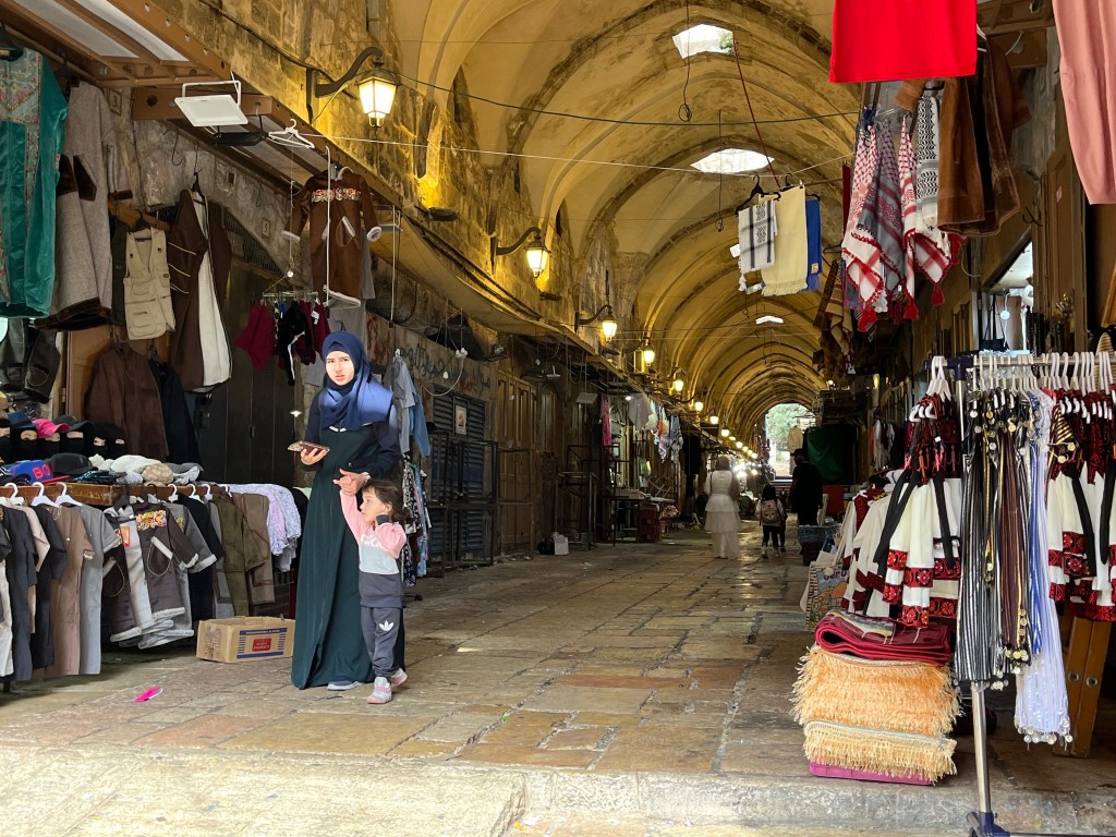 The city is divided into 4 sectors, the Armenian sector, the Jewish sector, the Christian sector and the Muslim sector. Due to the war, sadly, the city is empty of tourists. The shops and the cafes are empty. There is no business being done here.I have been here many times in the past, so the jewelry and ‘authentic’ clothes don’t interest me. I stopped to have a coffee late in the afternoon to call Marion and congratulate her and Jeremy on their new born son. I was alone in the cafe. In some ways I am of course drawn to the old city. Although there is no danger walking here and I never feel uncomfortable, I know that there is tension among the various religious people.
