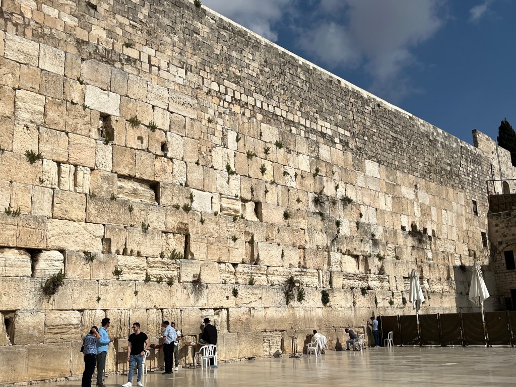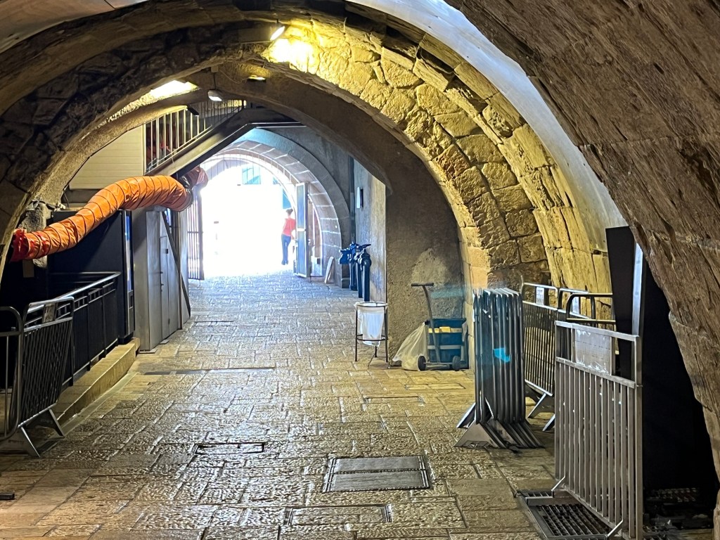 Of course, even though I am Jewish, and have no religious affiliation with Judaism, I wanted to see ‘the western wall’. You may of course ask me if I have no affiliation with the Jewish religion, why am I here? I think that I have answered that question on several occasions in my blog. The plaza in front of the wall is beautiful. The part of the wall that is visible represents the western wall. It runs about 100 meters and is probably 10 meters high. This represents only ⅓ of the height of the wall. The original temple was about 500 meters long. It must have been magnificent. Israel has done a fantastic job of excavating below the wall to see the ancient structure without either disturbing the wall or the mosque. I may visit this another time.