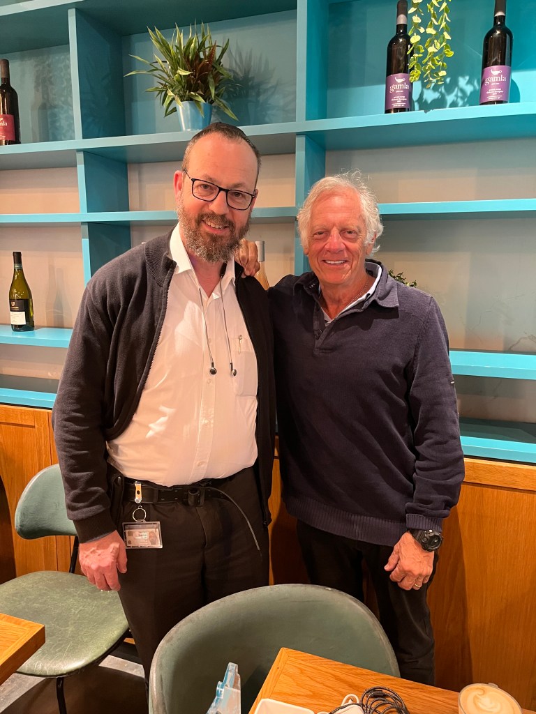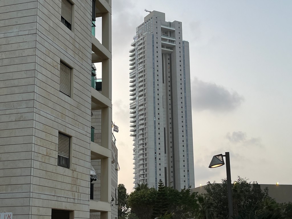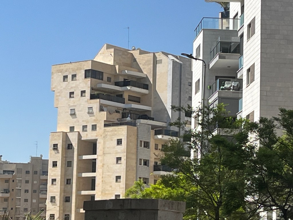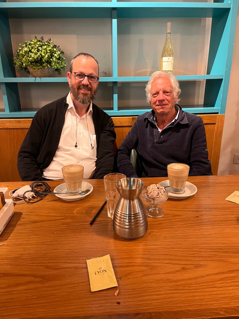 Last evening I was invited to dinner at my cousin Richard’s place in Rehova, 25K from Tel Aviv. We first went to synagogue, a place that I have not been to in 60 years. The service was orthodox, as the women sat separately. There were many English speaking worshipers there from the US and Canada. I recognized many of the hymns and read the English translation. I met Richard’s family for the first time. He came to Israel when he was very young and served in the arm as a tank commander. He has 4 children, 1 of whom is in the army now. Everyone takes the current situation in their stride. This is what living in Israel is all about and you have to just accept it and get on with your daily life.
