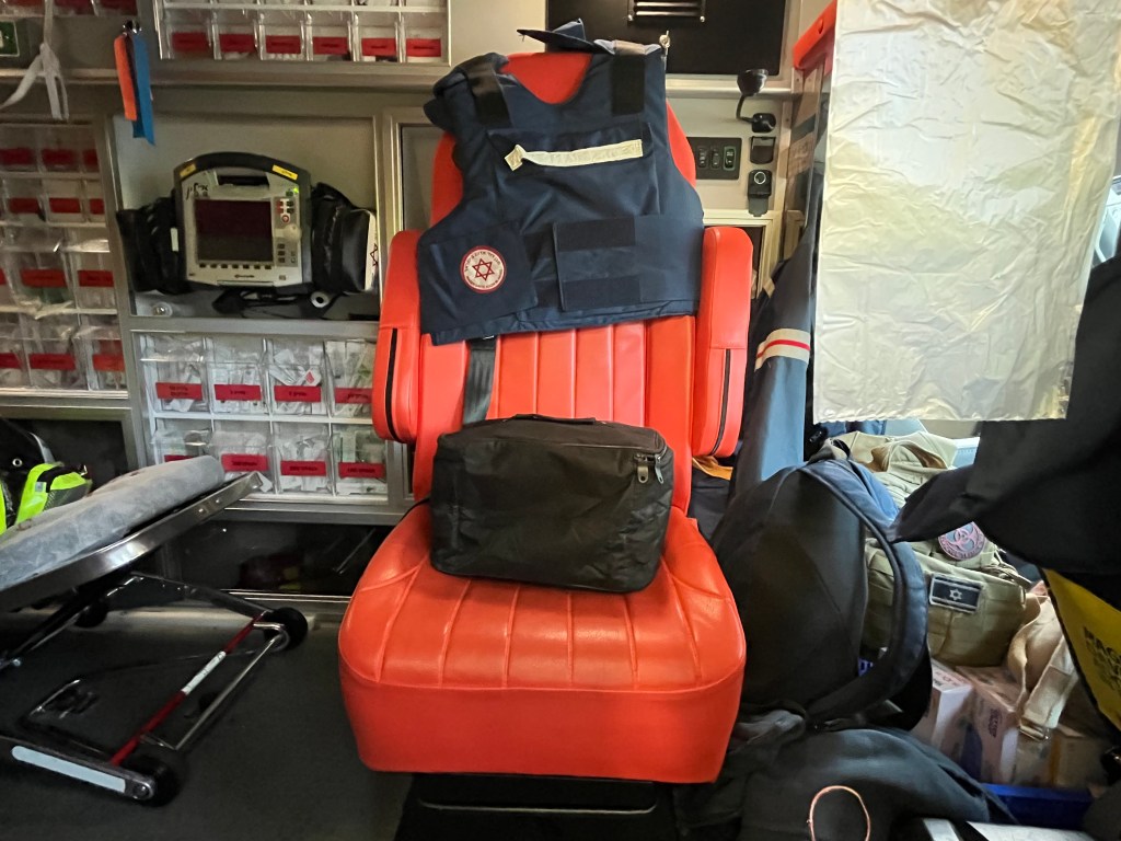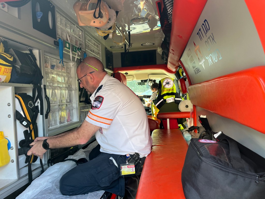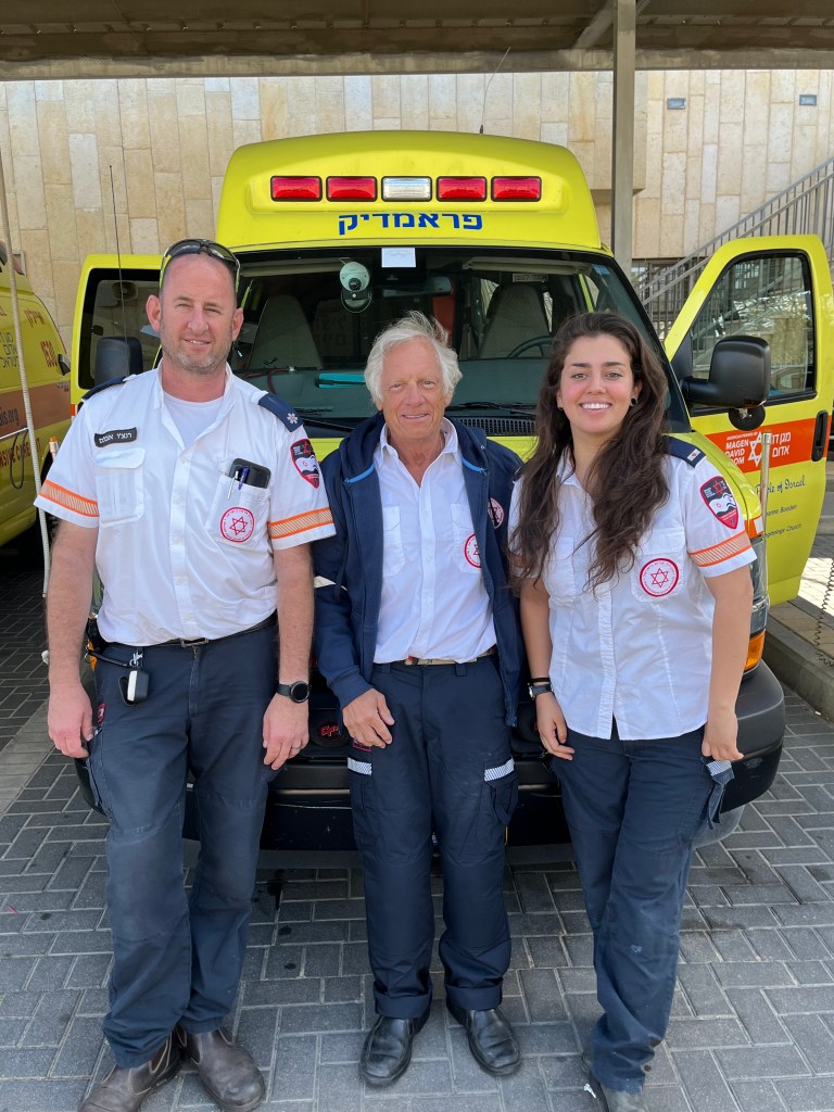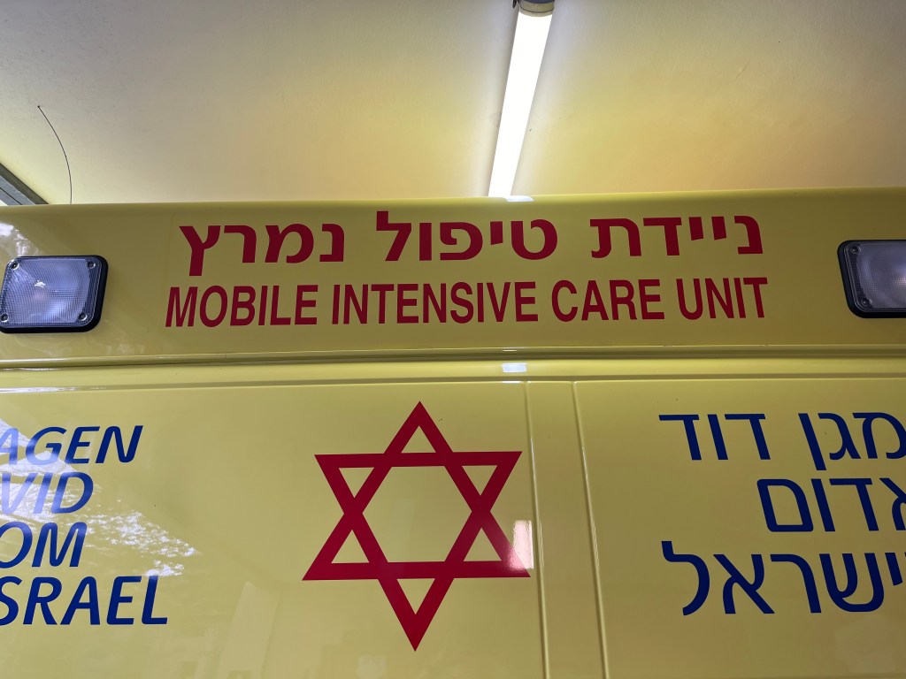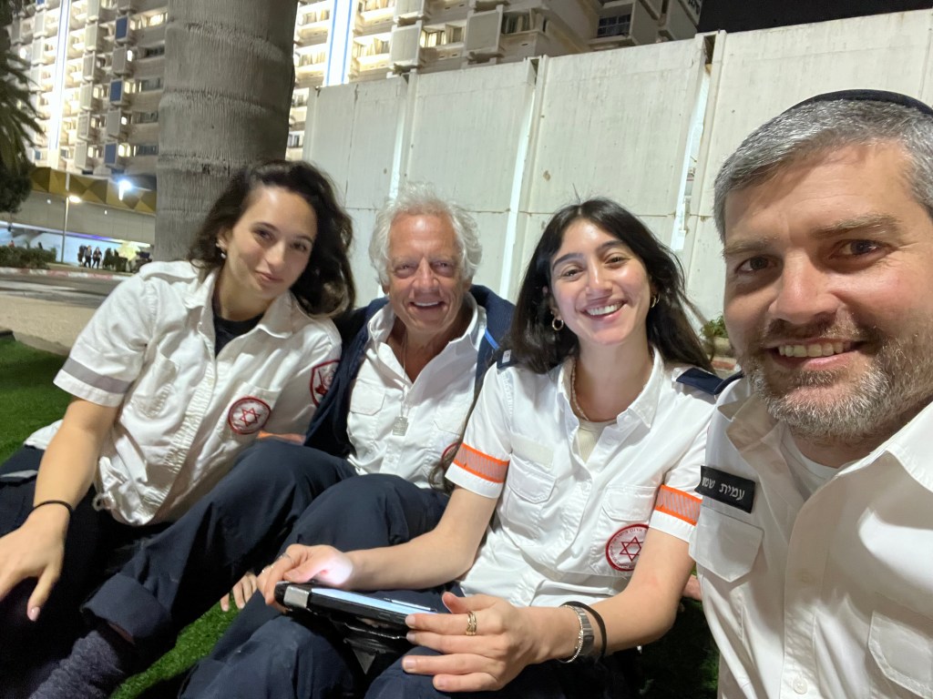 SI worked with MDA just outside of Tel Aviv on an ambulance which was fabulous. I was up at 5:30 to make work on time. I don’t have time to tell you my adventures so I will combine 2 days in 1 tomorrow. Tomorrow, I will work in Siderot, 5k from Gaza…..Don’t worry, I will be fine.