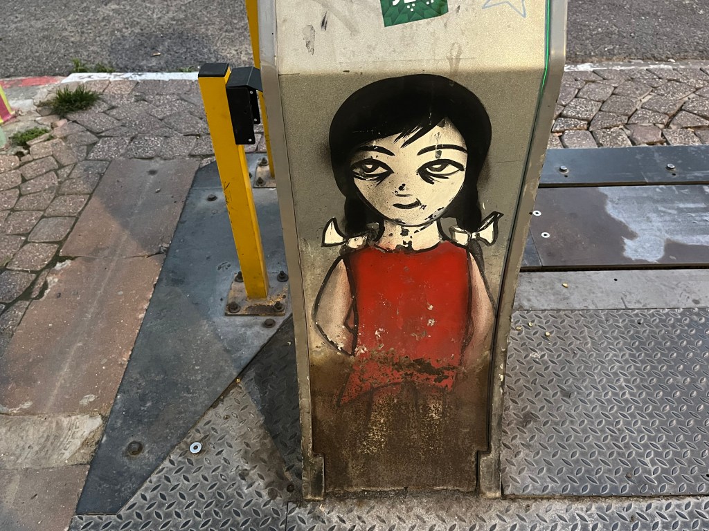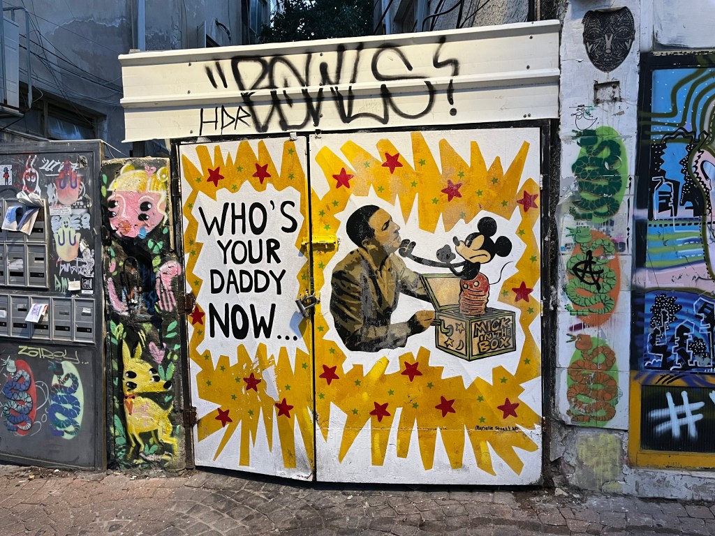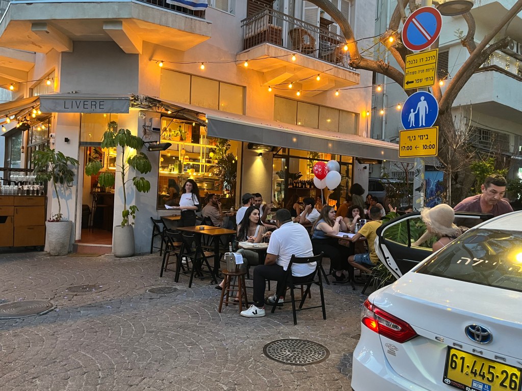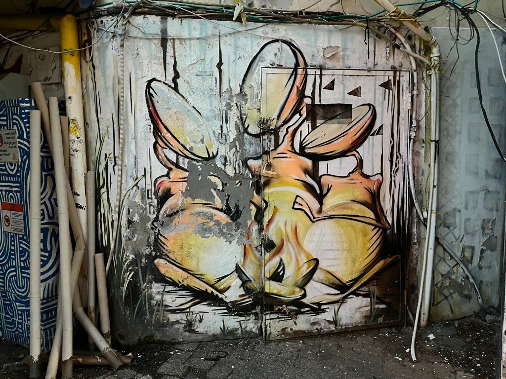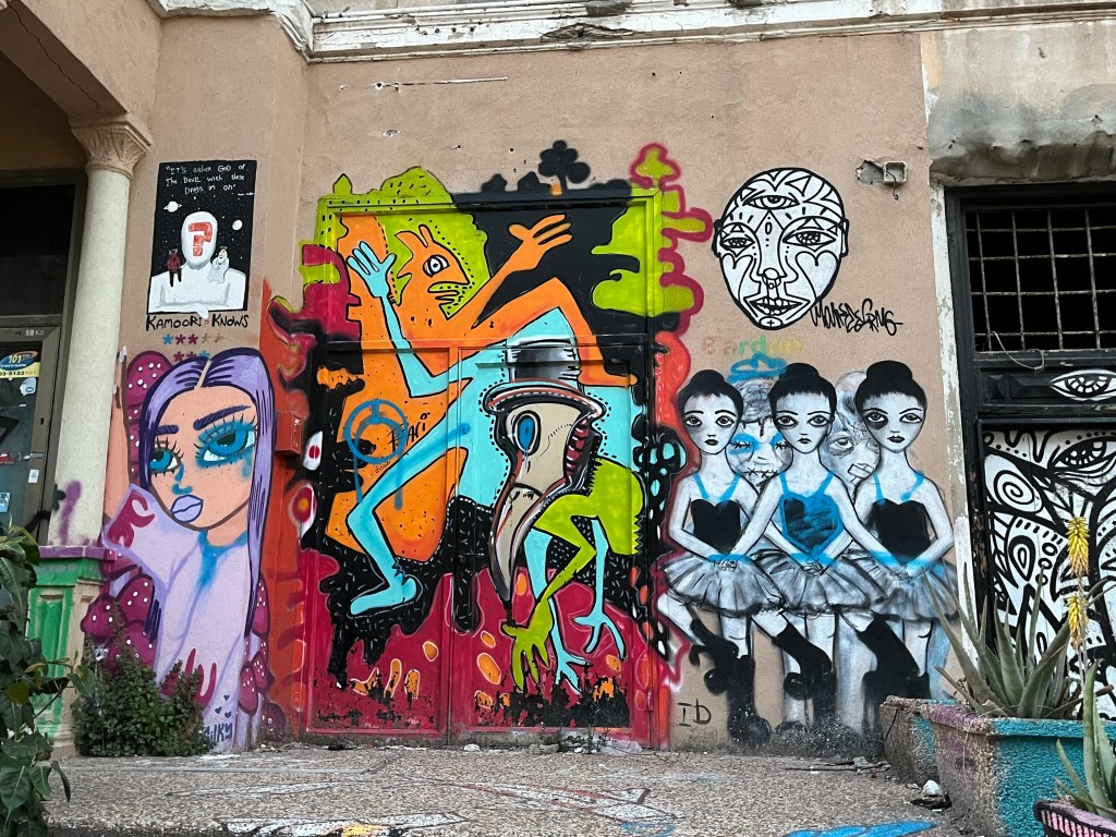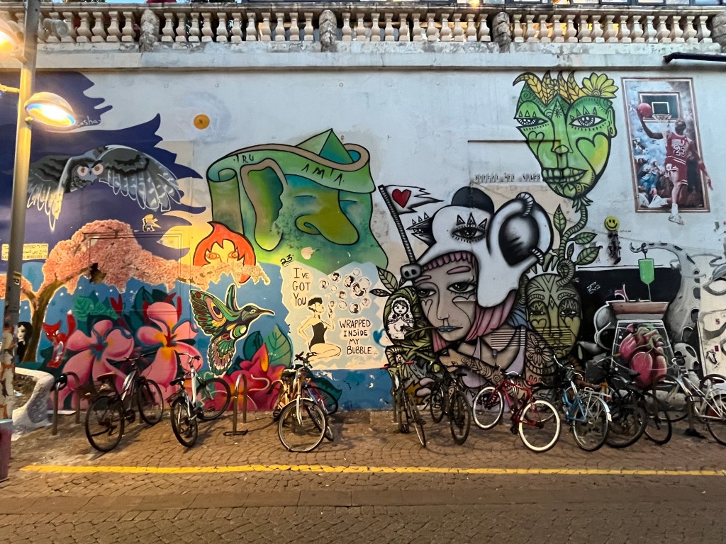 The restaurant was in the Neve Tsedek area of Tel Aviv. We walked there and sort of got lost on the convoluted streets, passing through the Florentin area. Neve Tsedek is an older area that has been completely renovated. It has upscale restaurants and shops and is more expensive to live in. Florentin is probably what Neve Tsedek used to look like before it got gentrified. The streets are very narrow and the area has 1 cafe and restaurant after another. It caters to the student, young adult and artistic crowd. Usually I don’t like graffiti but this type was really good quality art work. The food at the restaurant was wonderful.