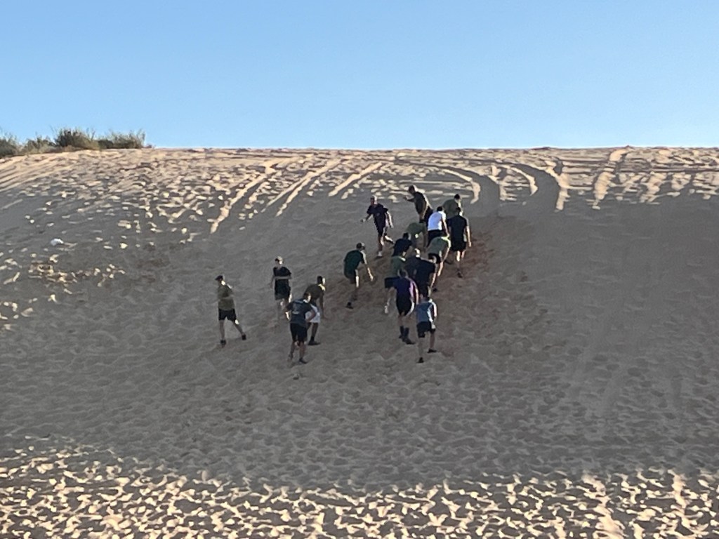 Special forces training, running up a sandy hill in 25C