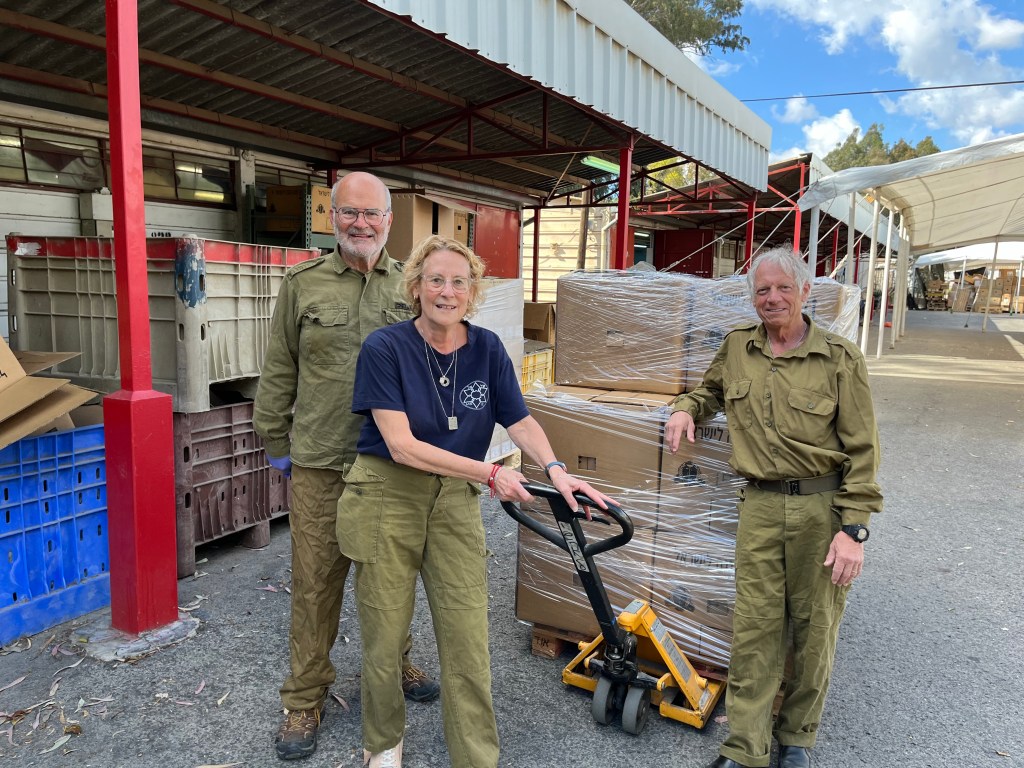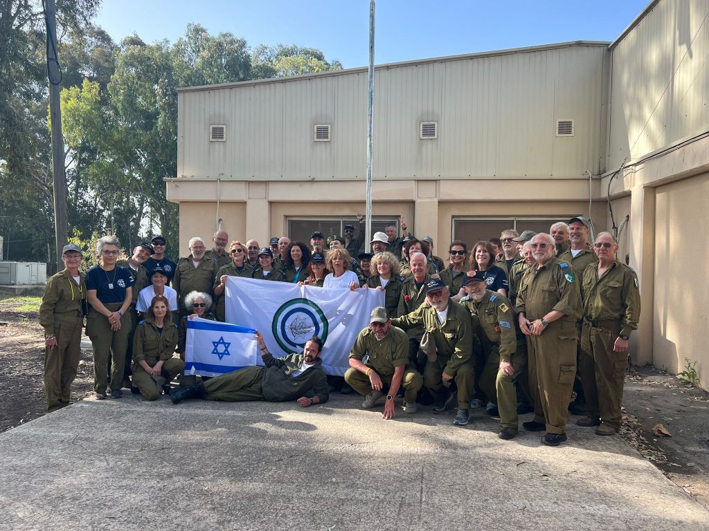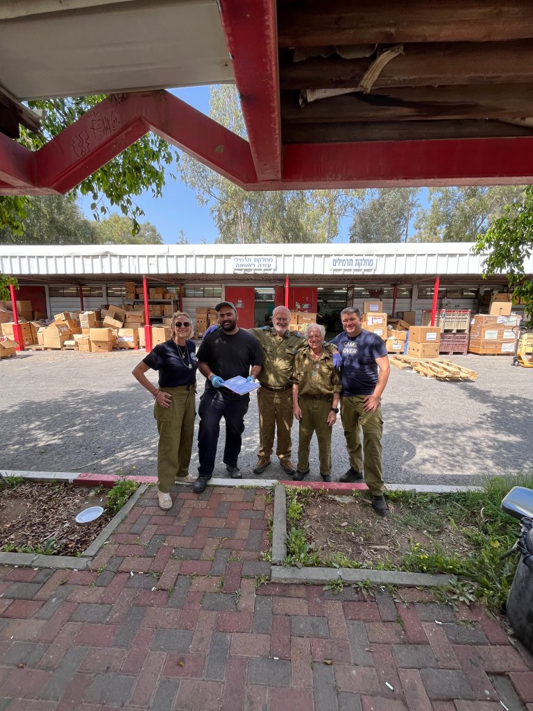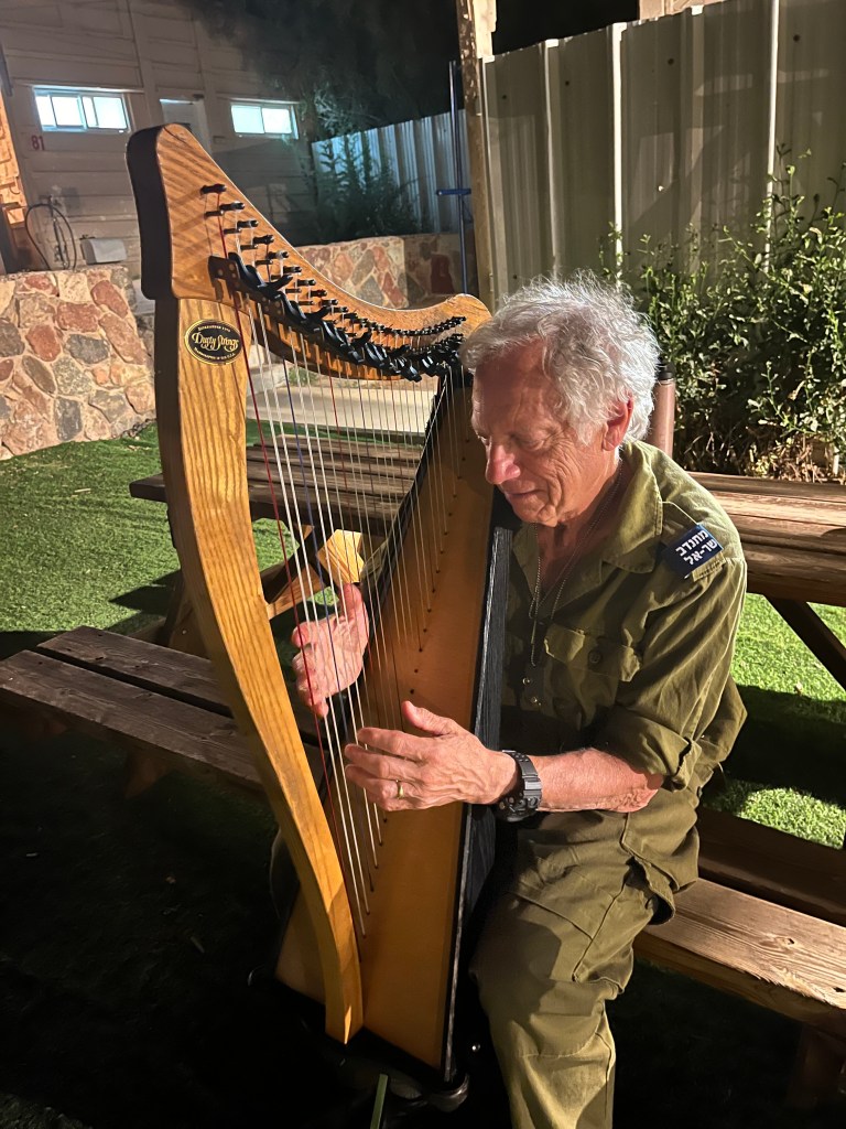 There were about 30 of us crammed together. The volunteers were mixed in with the non combatant soldiers, male and female. The soldiers with weapons ran to their designated posts. 2 min later there was a loud boom. Our planes flew over head for the next half hour. Everyone was calm. The people with cell phones went right to X (twitter) where we learned that the naval base had been hit with a drone. There was a hole in the building, but not do too much damage. We had visited that warehouse earlier in the day. The drone hit 100 m from where we were hiding in the bomb shelter. One of the American fellows travels around with a harp (about 4 feet high). He thought to bring it with him to the shelter. We heard the background noise of the fighting, air planes and I think the iron dome defence. He played the harp, singing Hebrew songs like Aveno Malkainew. It was surreal.