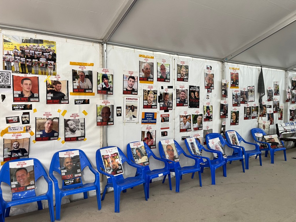 After dropping off my washing at the hotel, I walked over to Hostage Square. Although I was there 2 weeks ago with my cousin, Rochelle, it was much more sobering to me today. Having been in Israel now for 2 weeks, I can understand the horror to realize that these people, whose only crime was to be dancing at a music festival or living on a socially minded kibbutz, have now been in Hamas’ hands for 5.5 months. How many are still alive? How many have been raped? How many are now pregnant? I took many pictures that you can see below. A music band set up in the central area and played quiet type music. Leonard Cohen’s, Hallelujah, was one of the tunes that was played making me proud to be a Canadian. This, in spite of what the Canadian government and some Canadians have done, and are continuing to do now with their on going demonstrations. The misinformation and the lies that are being spouted in Canada and all over the world goes beyond all comprehension. When people scream ‘Free Palestine’, do they really understand that that means putting Hamas back in control? If not, what are they offering as an alternative?