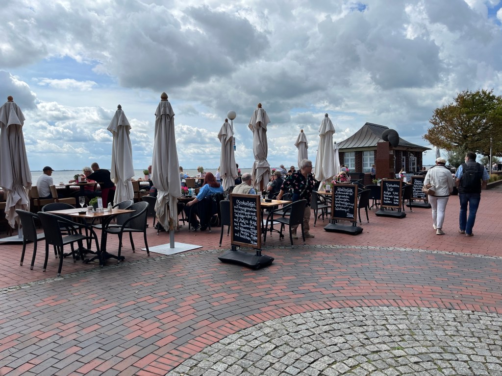 I am staying at the Nordsee Hotel on the beach just outside of Wilhelmshaven. It is a nice enough 2-3*, very clean like everything in Germany but without too much character. I wasn’t looking for character; I was more interested in price and convenience when I chose it. I have a beautiful view of the beach and the gardens and I can get to ‘downtown’ easily in 5 minutes on my motor bike.