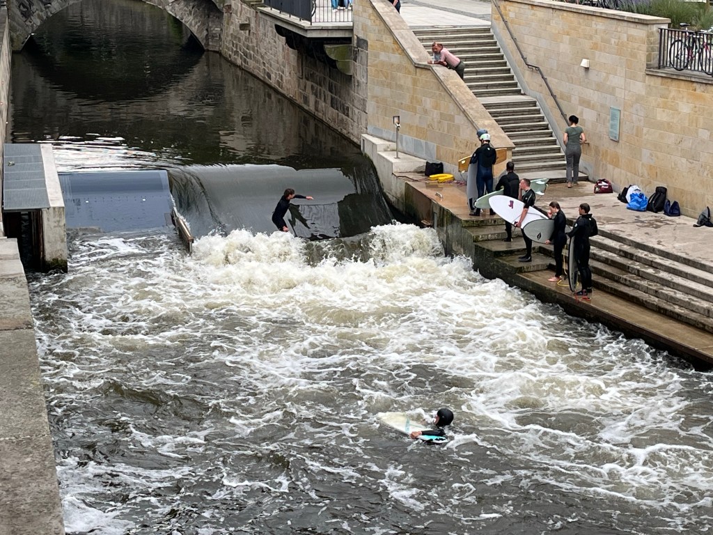 Last evening I had dinner at the Factory Hotel. I know that I said that I would not discuss alcohol or restaurants but the following is a must. The Germans know how to plan cities for the general population. However, they are a little short with restaurants. The venue of the restaurant was superb. I was seated at a table outside overlooking a pond with a fountain. I ordered a main course of tuna and asked for a margarita, a ¼ litre of French wine and bread to go with the meal. I like to have a piece of bread before imbibing in alcoholic beverages as it lines the stomach. I learned that from a nurse at a hospital in France when were drinking ‘un peau’ after Friday noon rounds with the patron. The wine arrived first. 10 minutes later the bread arrived with butter but no cutlery. The tuna arrived with the margarita. The tuna was ok… but the price was 4*. Afterwards the waitress asked me if I liked the margarita. I told her that it was ok but lacked the salt on the edge of the glass. She told me that it was the first time that they had prepared one. I think that the delay was because they were looking for the instructions of how to mix one on Google.