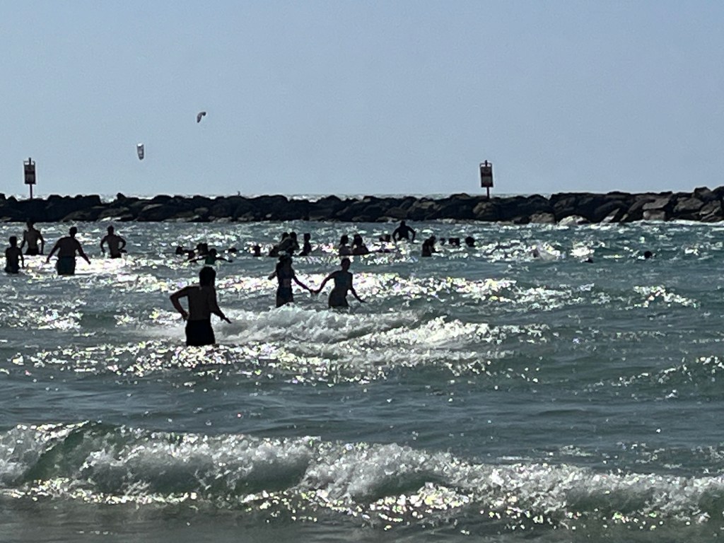 I got on a public bus and travelled up the island. The island is surprisingly hilly, with windy narrow roads. It would be a great place to ride a motorcycle but probably very difficult to ride a bike unless you are in really good condition. I got off the bus, half way up the island and walked down to the beach. The waves were rolling in onto the beach and the water looked inviting with many sailboats moored in the distance. 2 ladies were coming out of the water so I asked them about the water temperature. They said it was cold but when I tested it, it was much warmer than Laurentian lake water in June. They informed me that there were no jelly fish or sharks here as the water is too cold.