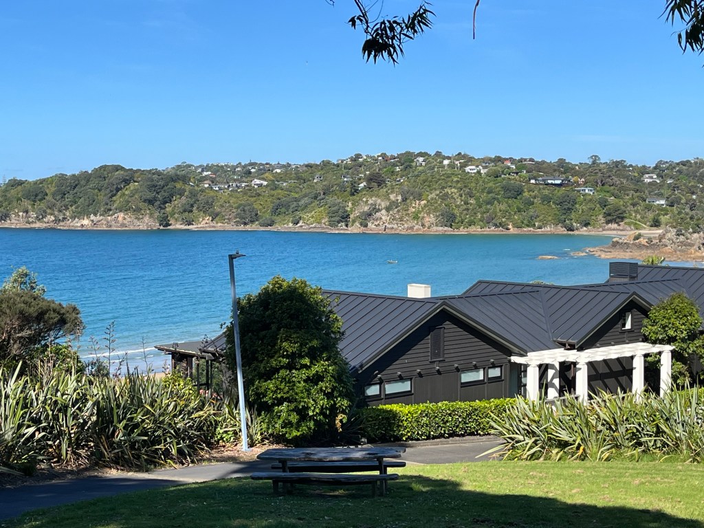 Waiheke Island has a similar atmosphere that you find in Jersey, one of the Channel Islands, Martha’s Vineyard or the island Brehat in France. Everyone seems to be relaxed and taking it easy. The tourist season has not started and the cafes and bars have only the locals in them. I am sitting in a cafe overlooking the ocean in a small village on the island. The island is famous for its wineries and if I am lucky I will find one open to sample the wine. If not, I will order some wine for supper here.
