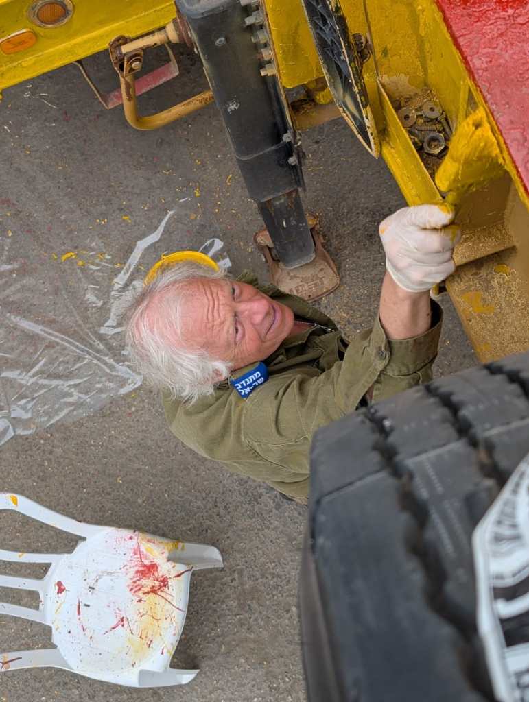 Today was virtually the same as yesterday so I will not go into details. I was chosen/volunteered to paint the truck trailers with 3 other volunteers and later joined by 2 others. This made the work go much faster. My uniform has a lot of paint spots so it will be used for painting in the future. My beautiful Israeli boots must unfortunately be returned to the army. They are also covered with paint dots. I removed some of them with turpentine and will polish them over tomorrow with black shoe polish.